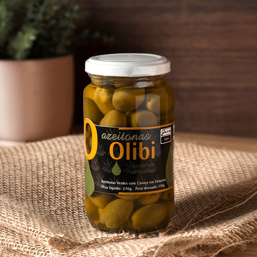 Nossa conserva de azeitonas verdes com caroço da variedade Ascolana, pintada e rugosa, é produzida a partir dos frutos cultivados no nosso Olival em Aiuruoca, na Serra da Mantiqueira.